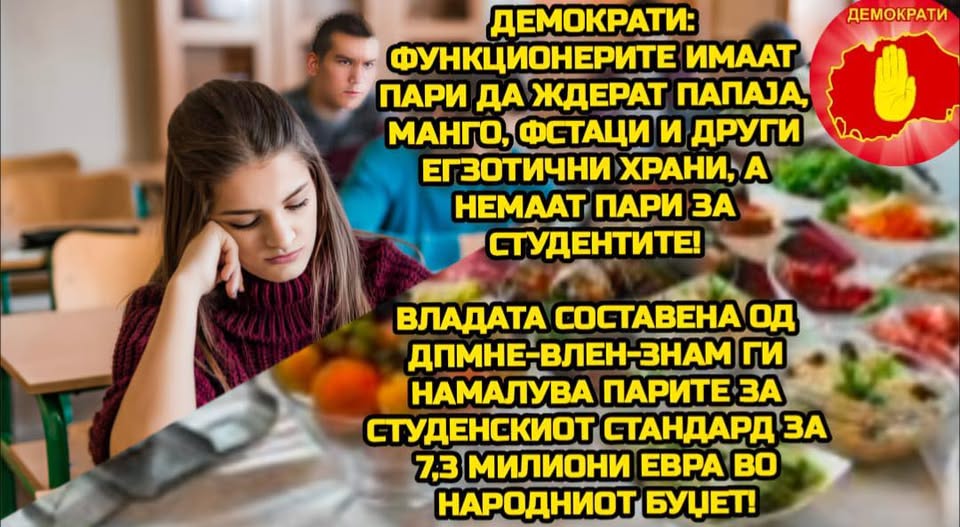 декември 15, 2025 Владата ги намалува парите за студентскиот стандард Претходно ТОА СЕ ТИЕ ШТЕТНИЦИ ВО МАКЕДОНСКАТА ПОЛИТИКА! Следно КАДЕ СТЕ ВИДЕЛЕ ПОЛИТИЧКИ КРИМИНАЛЦИ ДА СЕ ГОНАТ ПОМЕЃУ СЕБЕ!